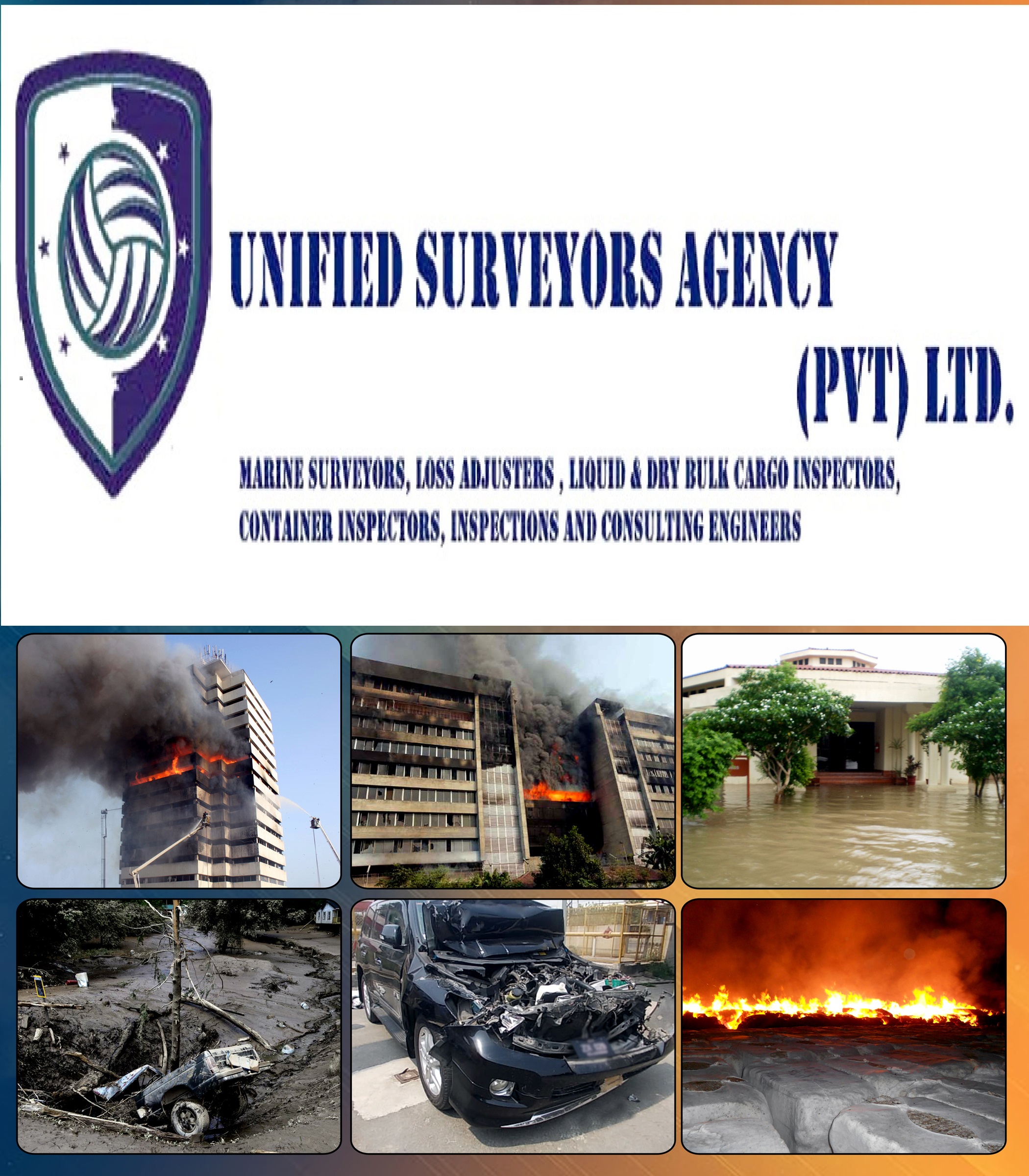 UNIFIED SURVEYORS AGENCY (Pvt.) Ltd is one of the leading private & independent survey company in Pakistan, USA has various Divisions each one being managed & looked after by highly qualified & experienced personnel in the relevant field for execution of the Job with perfection and to the utter satisfaction of client. The divisions mainly are Marine Surveyors, Liquid & Dry Bulk Cargo Inspectors, Container Inspectors, Inspections and Consulting Engineers, Motor & Third Party Compulsory Business, Pre-Inspection & Fire & Property Damage Business, Machinery Break down and of all types of commodities, as well as Insurance loss Adjusting.